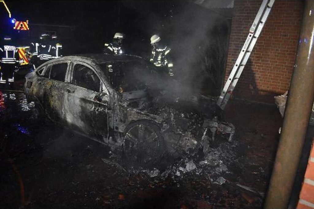 Rieste () – In Rieste im Landkreis Osnabrück hat ein brennendes Auto in der Nacht zu Donnerstag erheblichen Sachschaden verursacht. Das teilte die Polizeiinspektion Osnabrück mit.