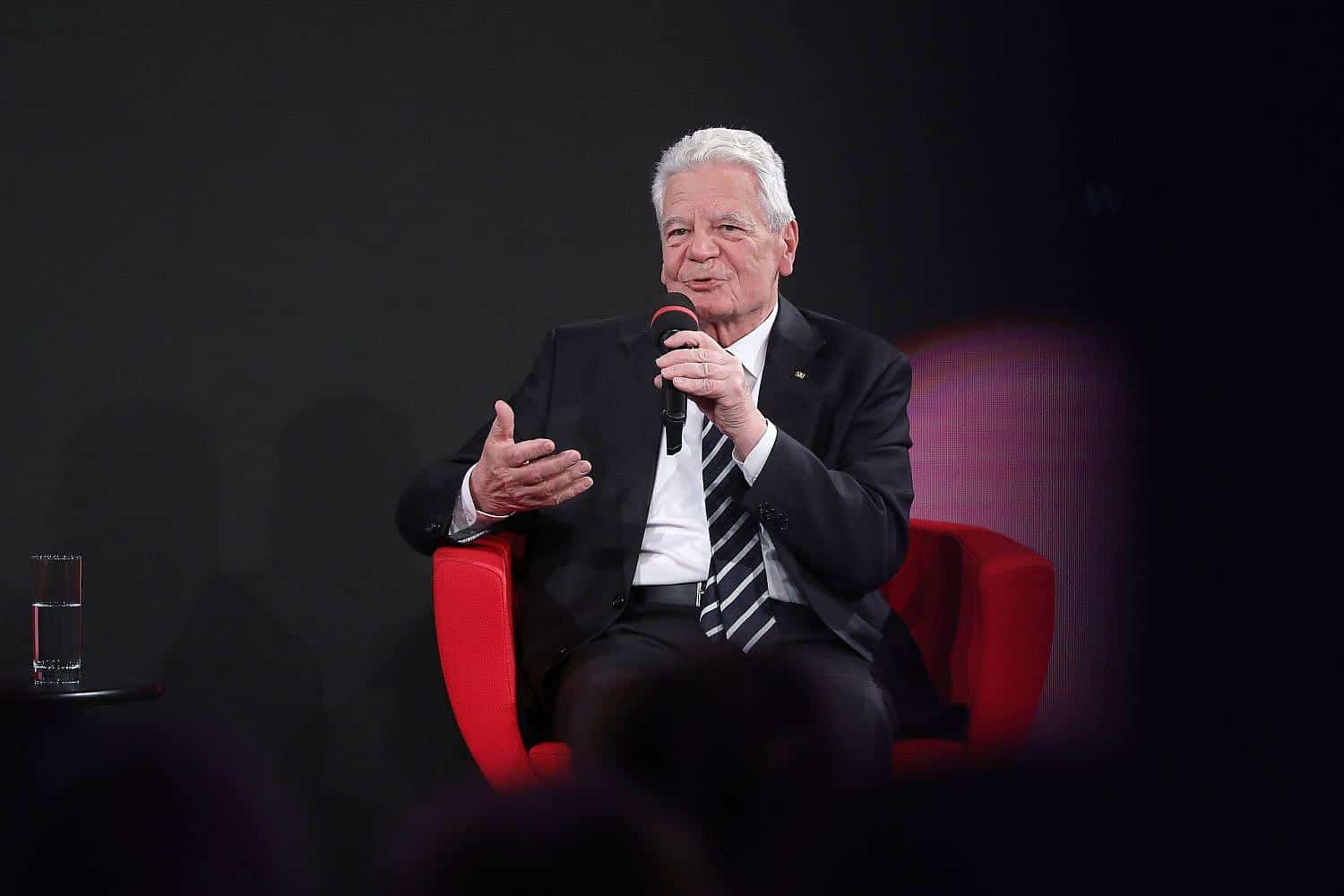 Er wünsche sich von den Qualitätsmedien „mehr Augenmaß oder mehr Fairness“, fügte Gauck hinzu. Kritik sei vor allem nötig, wo Demokratie und Freiheit infrage gestellt würden, wie etwa in den USA durch Donald Trump. „Aber in einer Phase, wo die Akzeptanz des Guten bei einem Teil der Bevölkerung schwindet“, müsse man als souveräner Journalist seiner Verantwortung für die Demokratie gerecht werden, forderte er. „Sie sind ja meine Verbündeten bei der Verteidigung der Demokratie“, sagte er aus der Sicht eines Mediennutzers aus der demokratischen Mitte. „Deshalb wünsche ich mir einen größeren Respekt und eine breitere Wahrnehmung dessen, was dieses Land, diese Demokratie tatsächlich lebenswert macht.“