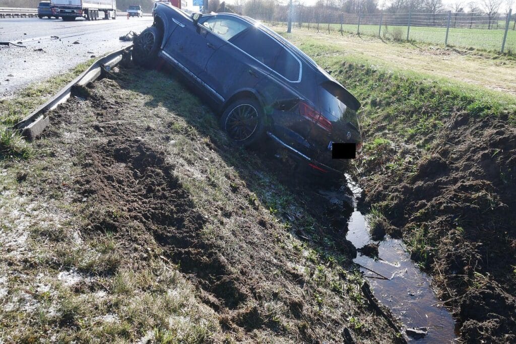 In einem der Unfälle kam eine Frau mit ihrem VW bei Graupel von der Fahrbahn ab und überschlug sich. Sie wurde leicht verletzt.