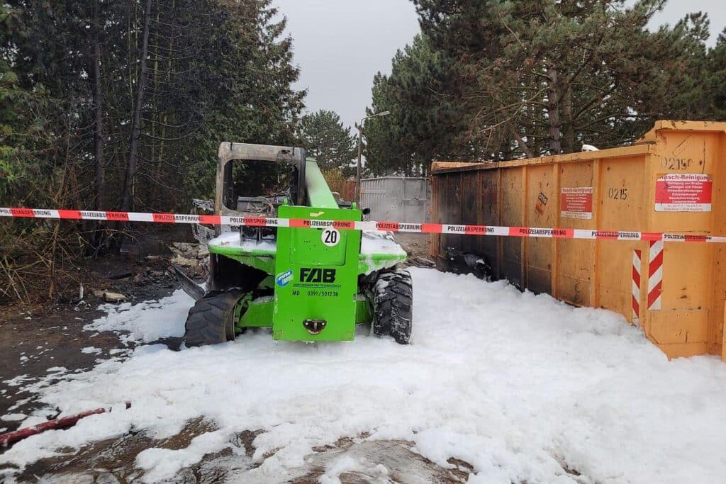 Radlader in Zielitz angezündet – Zeuge beobachtet Fluchtfahrzeug