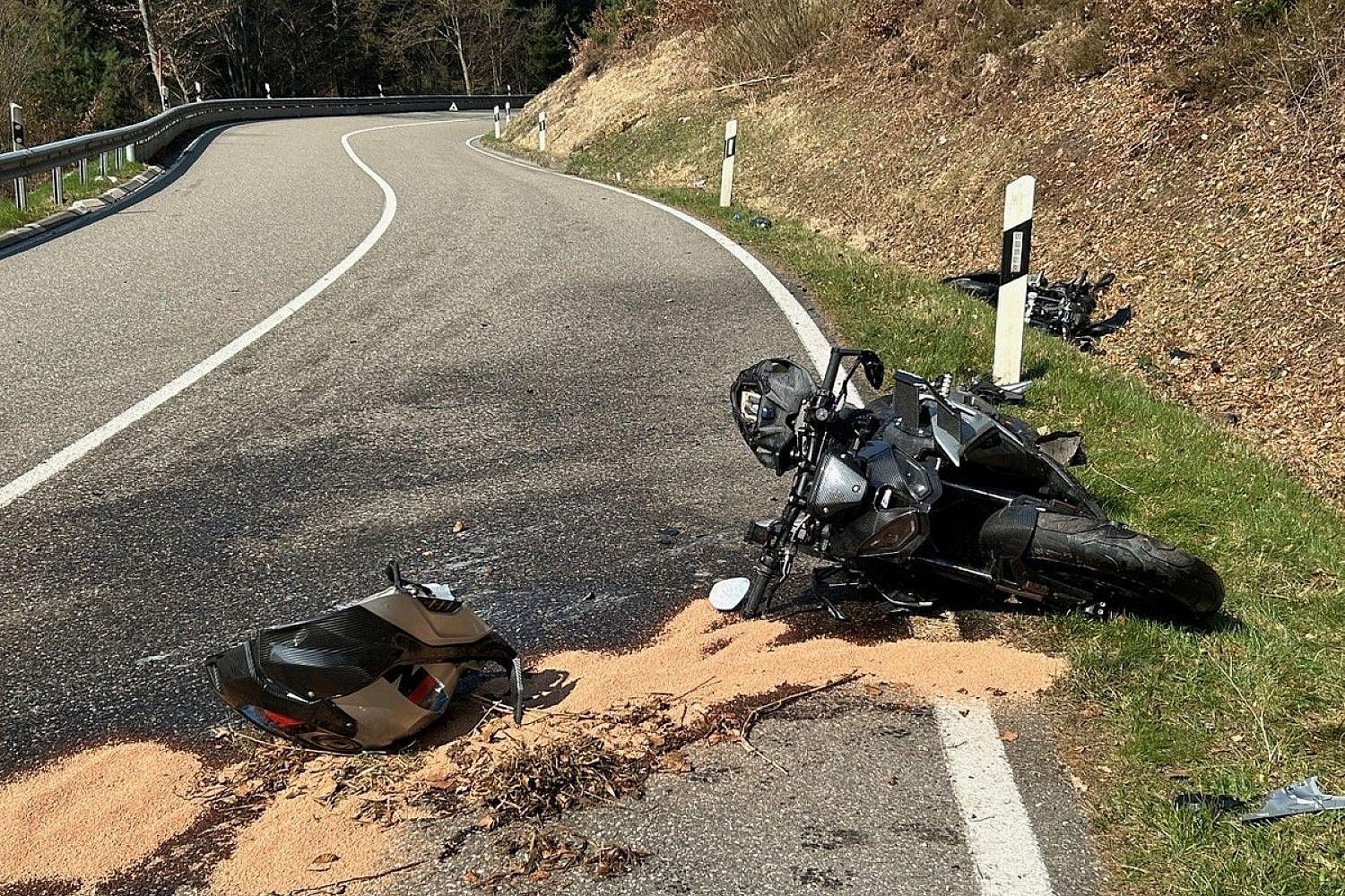 Ein 22-jähriger Fahrer aus der Region Neustadt verlor in einer Rechtskurve die Kontrolle, stürzte und sein rutschen des Motorrads brachte einen entgegenkommenden Fahrer zu Fall. Auch hier erlitten die beiden Männer nur leichte Verletzungen.