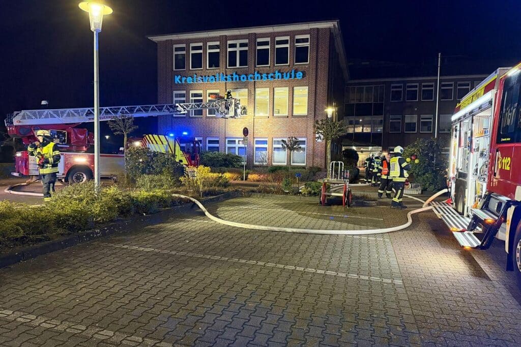 Aurich () – Die Freiwilligen Feuerwehren aus Aurich und Haxtum haben eine gemeinsame Großübung auf dem Gelände der Kreisvolkshochschule absolviert. Wie die Feuerwehr Aurich am Dienstag mitteilte, stellte ein anspruchsvolles Szenario die rund 45 Einsatzkräfte vor mehrere Herausforderungen.