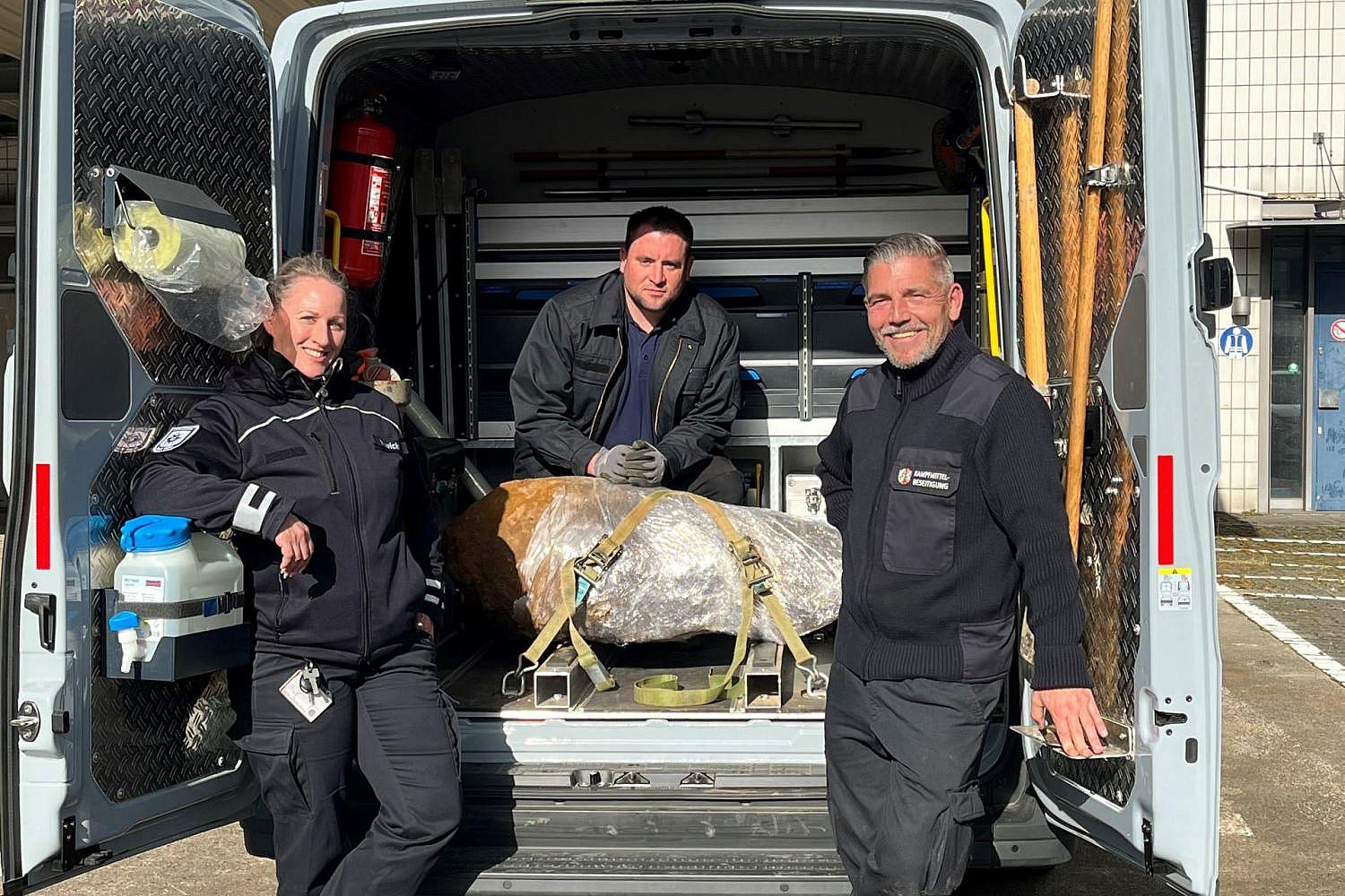 Der Kampfmittelbeseitigungsdienst Rheinland der Bezirksregierung Düsseldorf habe die englische Zehn-Zentner-Bombe mit Heckaufschlagzünder unschädlich gemacht. Der Blindgänger wird nun abtransportiert.