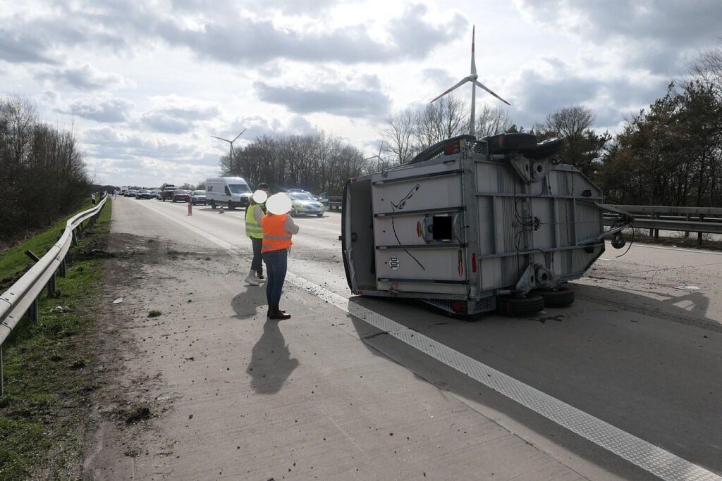 - Anhänger kippte und blockierte zwei Fahrstreifen nach Zusammenstoß mit Leitplanke.