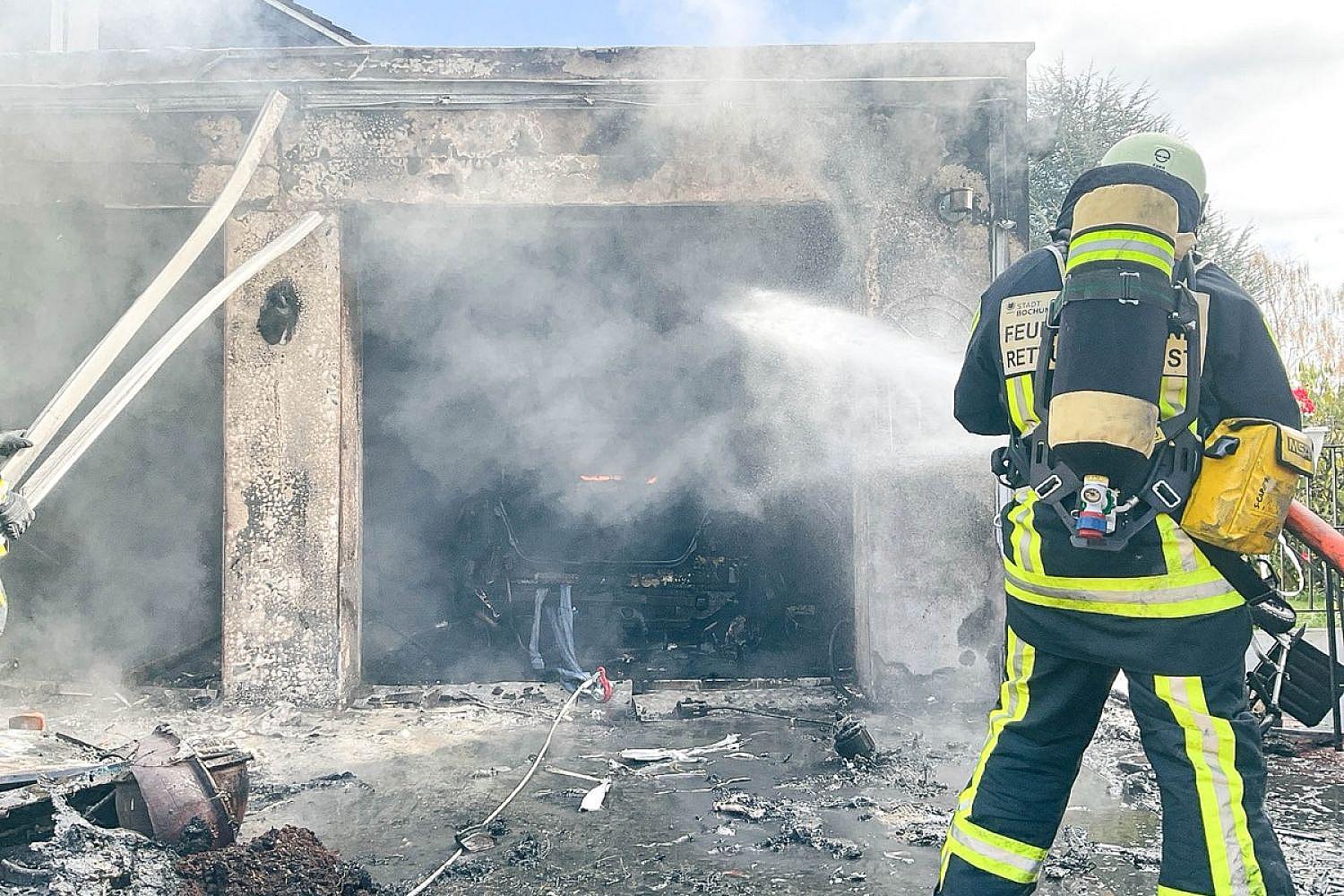 - Kontrolle des Garagenbrands durch die Feuerwehr Bochum