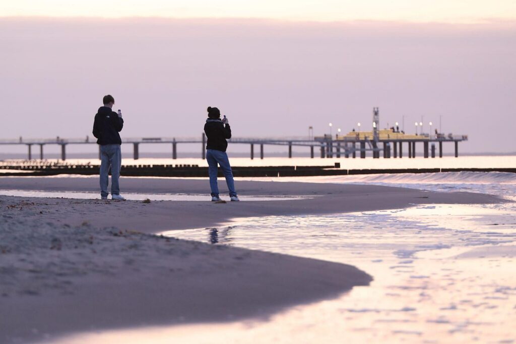 Die Temperaturen sinken auf 4 bis 1 Grad, in Bodennähe ist gebietsweise Frost bis -2 Grad möglich. Der Wind kommt schwach bis mäßig aus West bis Nordwest, an der Küste sind einzelne Windböen zu erwarten.