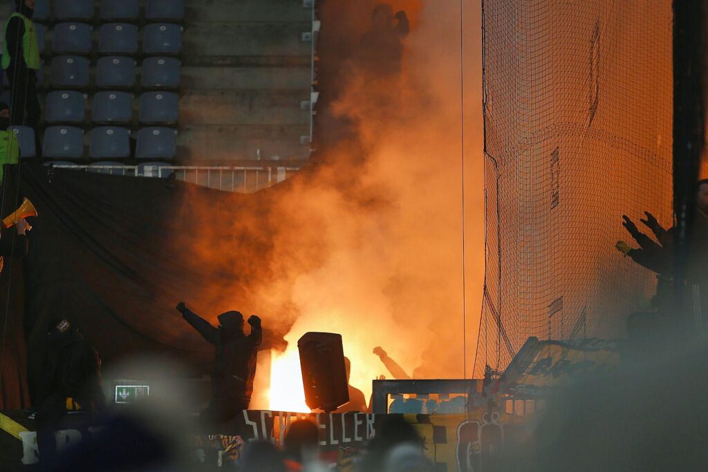 | Bildhinweis: | Fans mit Pyrotechnik (Archiv) |