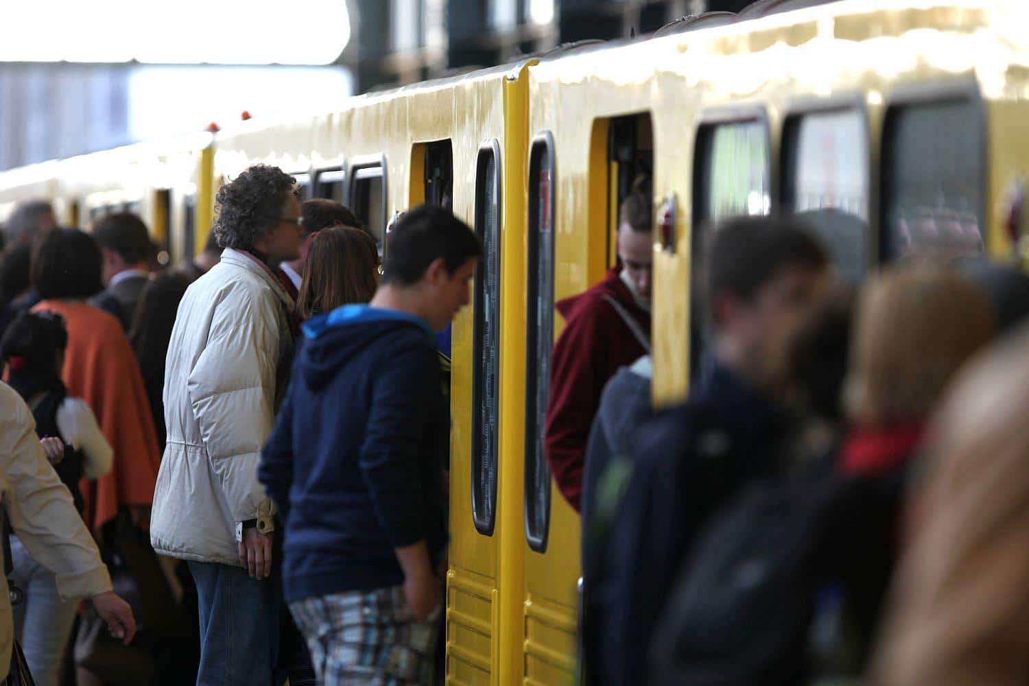 Bildhinweis: Fahrgäste am Bahnsteig einer Berliner U-Bahn