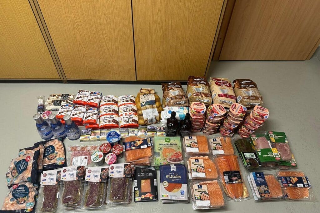 Bei der Überprüfung des Fahrzeugs am Samstag fanden die Einsatzkräfte im Kofferraum diverse Konsum- und Lebensmittel im Gesamtwert von etwa 1.200 Euro.