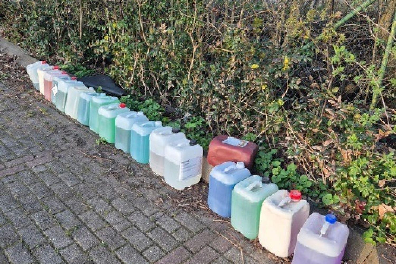 - 16 Kanister mit Flüssigkeiten am 25. März in Elsdorf-Westermühlen entdeckt.