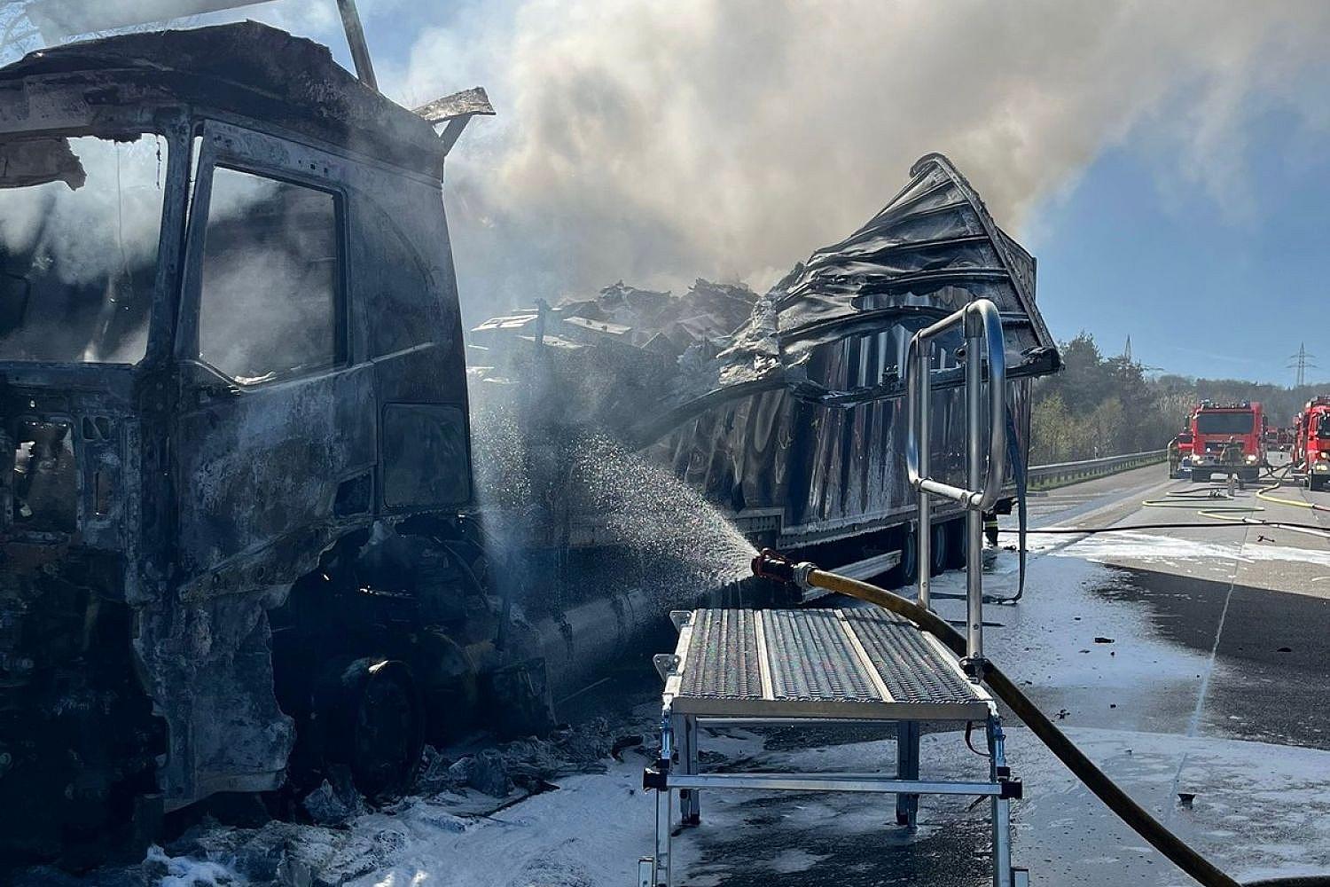 Der Fahrer des Lastwagens konnte sich unverletzt retten, doch die mehrstündige Vollsperrung der Fahrbahn in Richtung Frankfurt löste einen langen Rückstau aus.