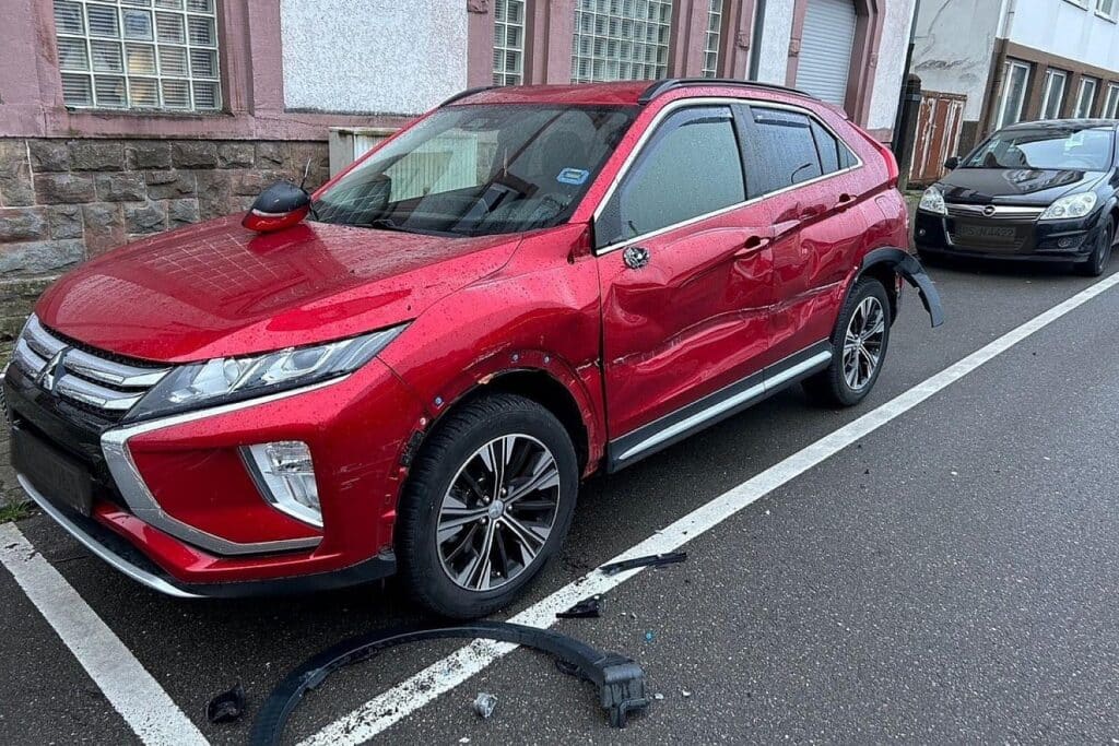 Am frühen Morgen des darauffolgenden Tages musste der Fahrzeughalter dann einen erheblichen Streifschaden an seinem roten Mitsubishi Eclipse feststellen.