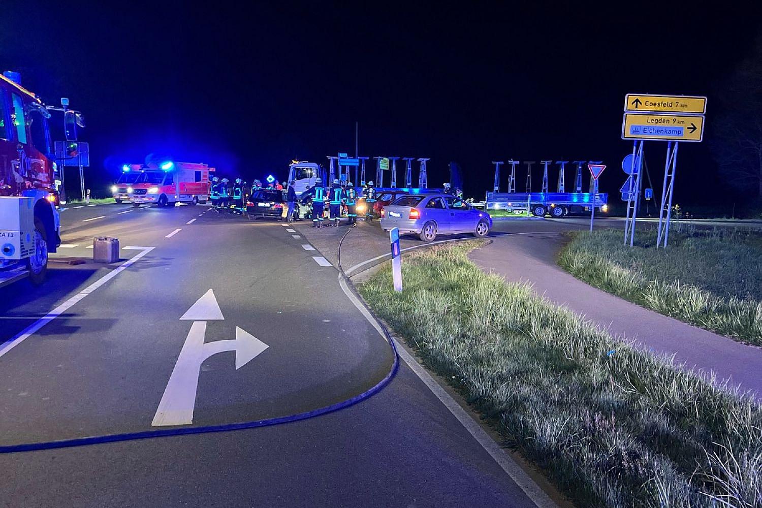 Coesfeld () – Bei einem Verkehrsunfall auf der L555 in Osterwick sind am Mittwochabend vier Menschen verletzt worden. Das teilte die Polizei Coesfeld mit.