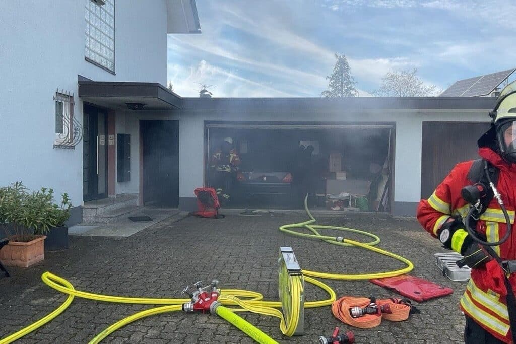 Die Einsatzkräfte wurden gegen 14:30 Uhr alarmiert und konnten das Feuer in der Garage neben einem Wohnhaus löschen.