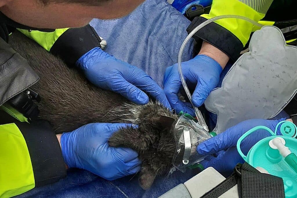 - Feuerwehr hat eine verletzte Katze gerettet und mit Sauerstoff versorgt.