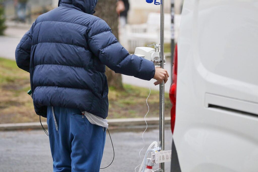 | Bildhinweis: | Patient mit Infusionsständer (Archiv) |