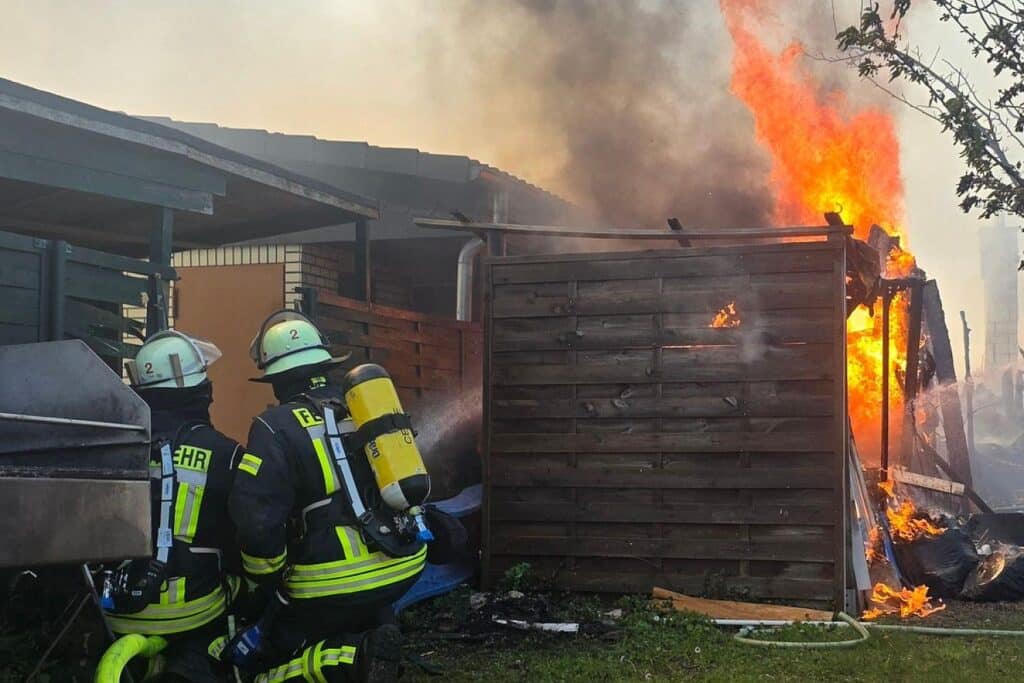 Mehrere Gartenlauben in Celle brennen in Vollbrand – Feuerwehr rettet Hühner