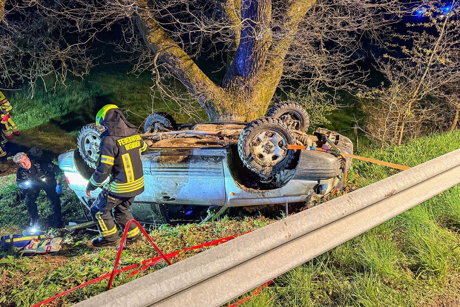 Bei Eintreffen der ersten Einsatzkräfte befanden sich bereits eine betroffene und eine leicht verletzte Person außerhalb des Unfallwagens. Eine schwerverletzte Person konnte sich nicht selbstständig befreien und wurde durch den Rettungsdienst im Fahrzeug erstversorgt.
