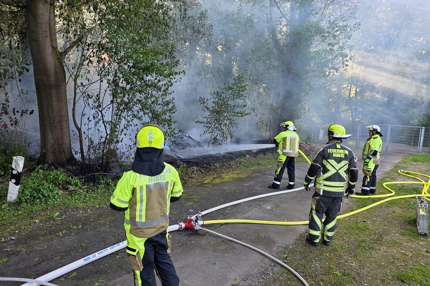 Hünxe () – Die Freiwillige Feuerwehr Hünxe hat am Dienstagabend einen Brand in einem Waldstück an der Gahlener Straße gelöscht. Wie die Feuerwehr mitteilte, war die Einheit Hünxe um 18:46 Uhr mit dem Einsatzstichwort „Grasbrand“ alarmiert worden.