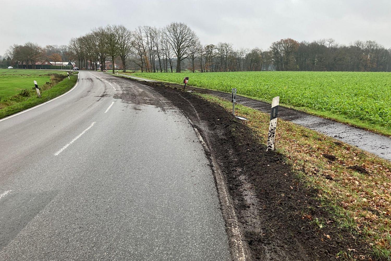 Bakum () – In Bakum im Landkreis Vechta hat ein Fahrer nach einem Unfall die Flucht ergriffen. Nach Angaben der Polizei Cloppenburg/Vechta kam ein unbekannter Lkw-Fahrer am Donnerstag gegen 11:15 Uhr in einer Kurve der Essener Straße von der Fahrbahn ab.