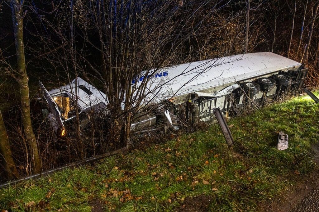 - Sattelzug ist eine Böschung hinabgestürzt
