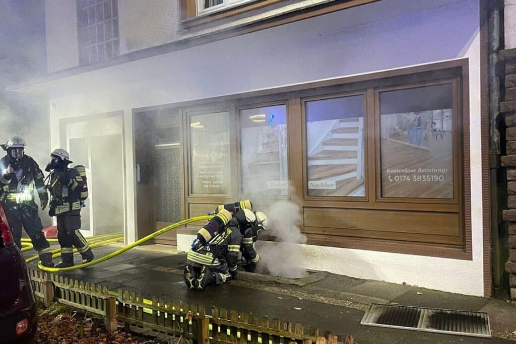 In einem Wohn- und Geschäftshaus in der Schöntaler Straße hatten Passanten Rauchentwicklung aus einem Kellerschacht bemerkt. Die Feuerwehr löschte einen Brand im Keller, bei dem auch Strom- und Gasleitungen betroffen waren.