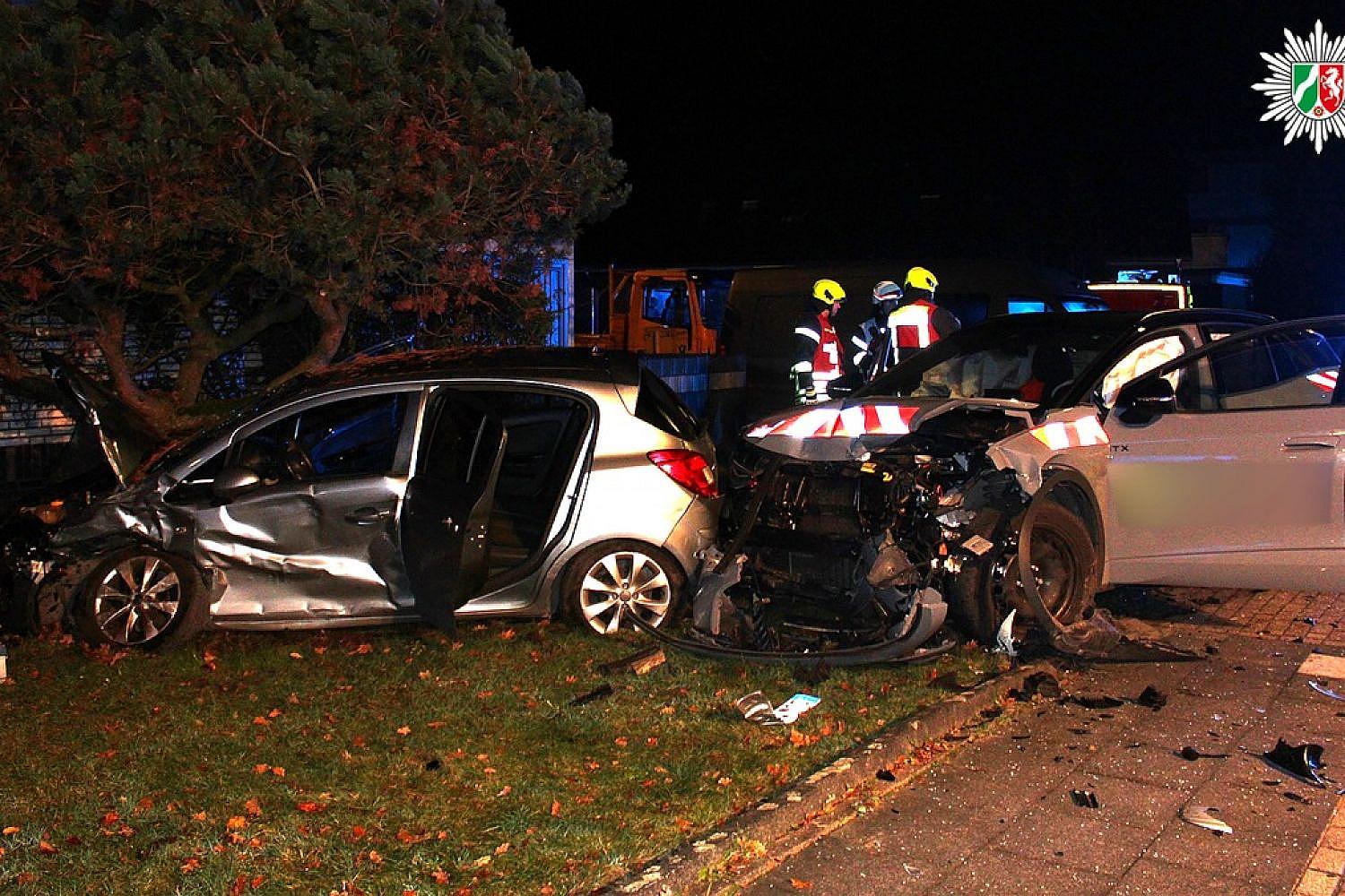 Durch die Wucht des Aufpralls wurden beide Fahrzeuge in den Vorgarten eines Wohnhauses an der Königshardter Straße geschleudert, wobei eines gegen einen Baum prallte. Der Unfall hatte sich gegen 20:37 Uhr ereignet.