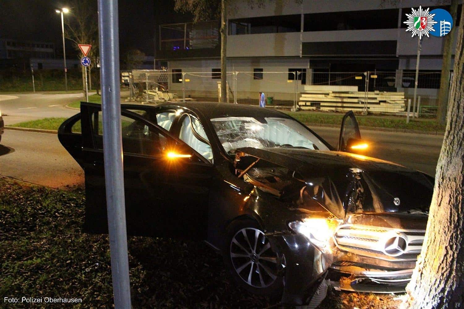 Oberhausen () – Nach einem nächtlichen Unfall in Oberhausen ermittelt die Polizei, ob die geschilderte Unfallursache der Wahrheit entspricht. Ein zufällig vorbeifahrender Polizeibeamter hatte am Dienstagabend gegen 23:30 Uhr einen stark beschädigten Mercedes am Brammenring entdeckt und angehalten.