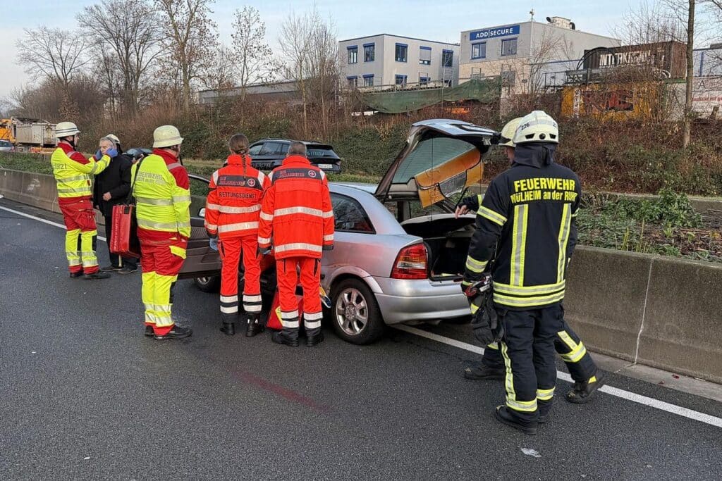 Mülheim an der Ruhr () – Bei einem Verkehrsunfall auf der Autobahn A40 in Fahrtrichtung Essen sind am Montagvormittag drei Personen verletzt worden. Das teilte die Feuerwehr Mülheim an der Ruhr mit.