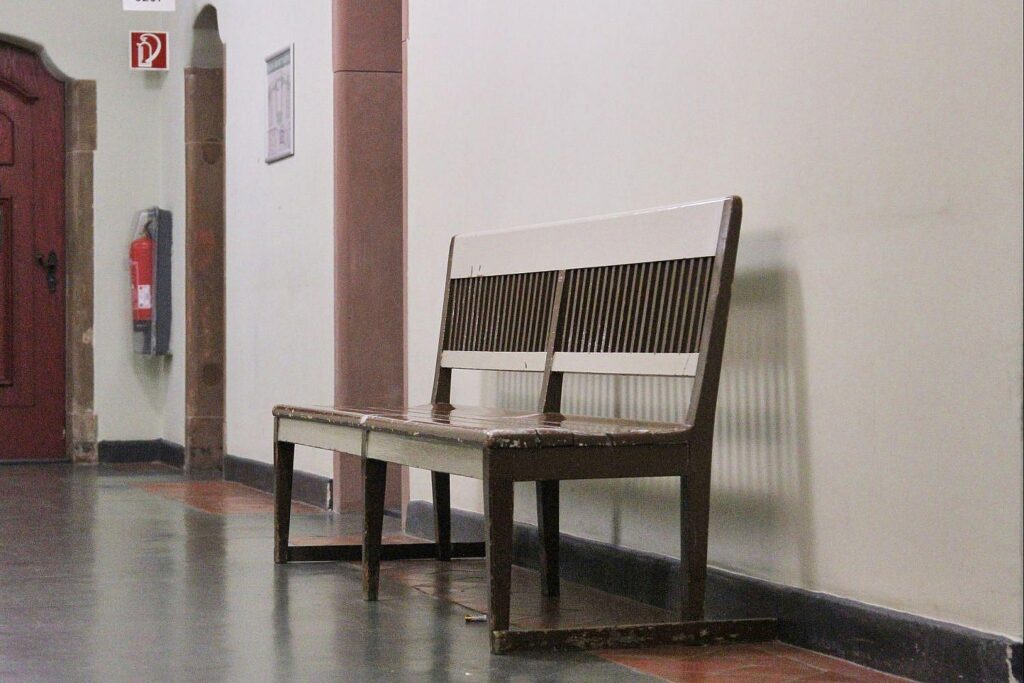 | Bildhinweis: | Sitzbank in einem Landgericht (Archiv) |