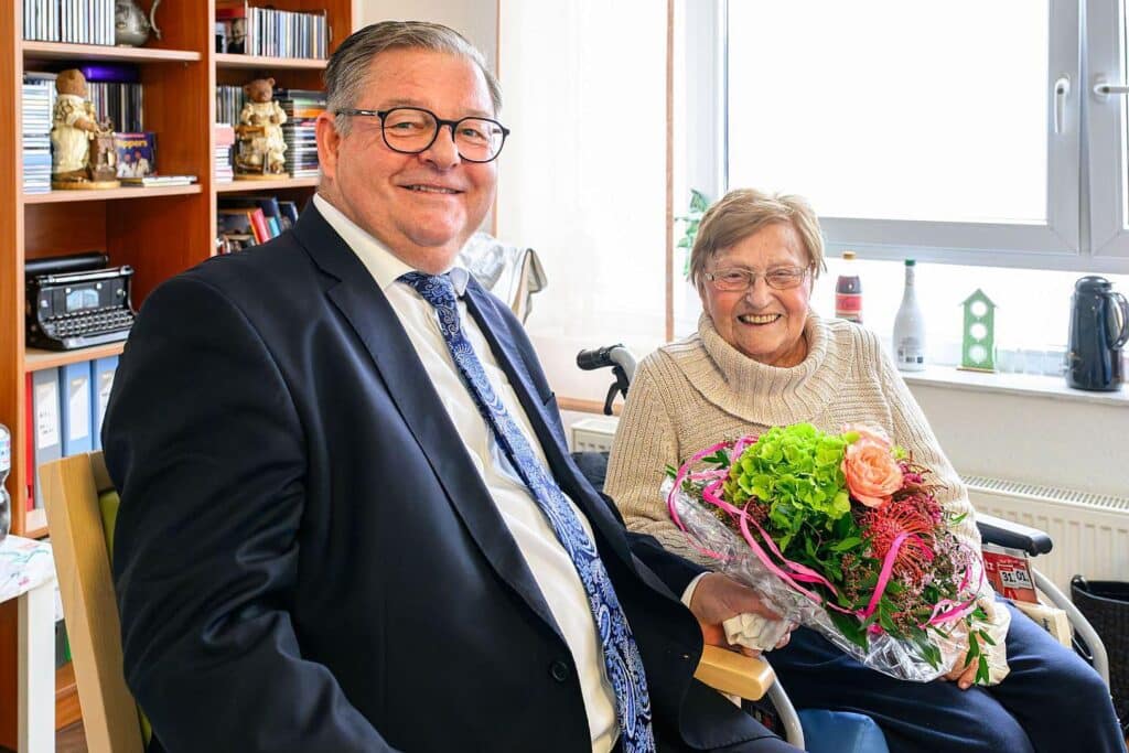 Bei dem Besuch entstand ein Foto der Jubilarin mit dem Bürgermeister, das vom städtischen Fotografen Tom Thöne aufgenommen wurde.