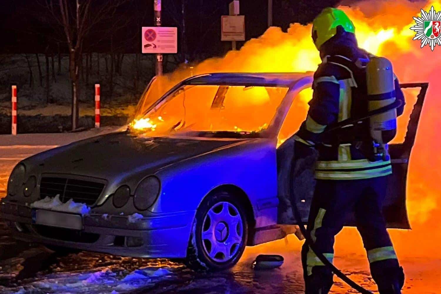 Zigarette löst Fahrzeugbrand in Oberhausen aus