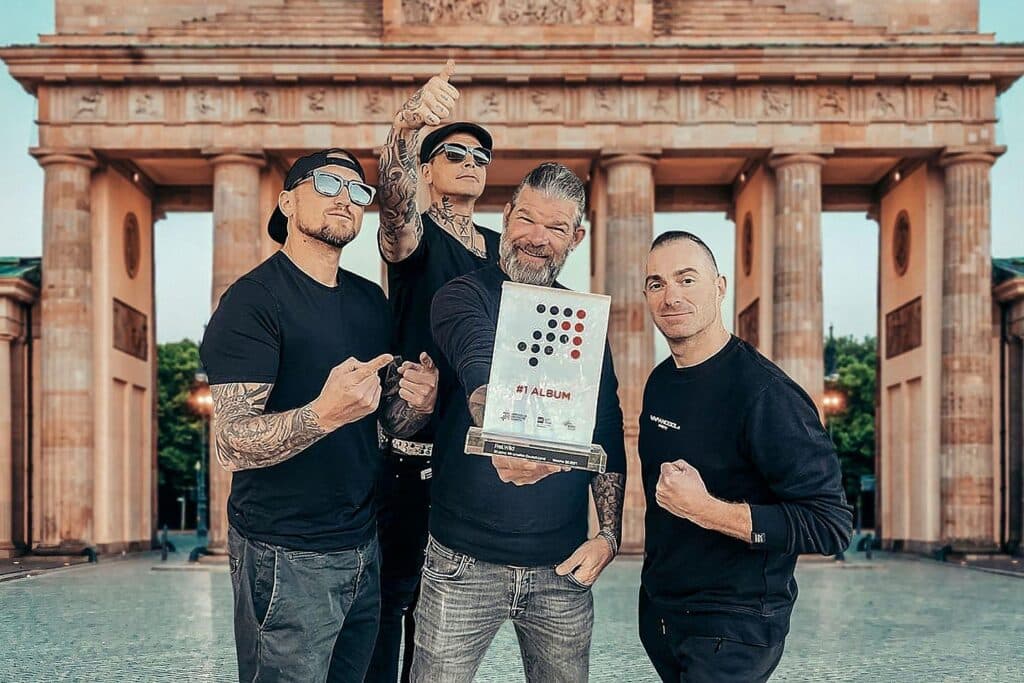 | Bildhinweis: | Frei.Wild mit dem „Nummer 1 Award“ der offiziellen Deutschen Charts (Archiv), Frei.Wild via |