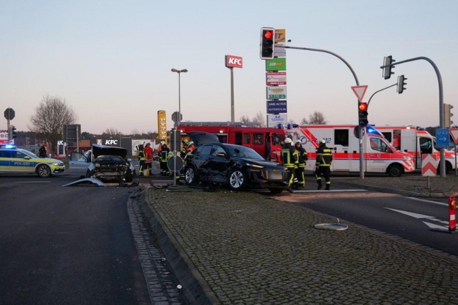 Nach ersten Ermittlungen fuhr eine 28-jährige Frau mit ihrem Volvo aus Richtung Zeven kommend bei Rotlicht über die Kreuzung in Richtung Mulmshorn. Dabei kollidierte sie mit einem Audi, dessen 39-jähriger Fahrer aus Richtung des Industriegebiets ‚An der Autobahn‘ kam und auf die A1 auffahren wollte.