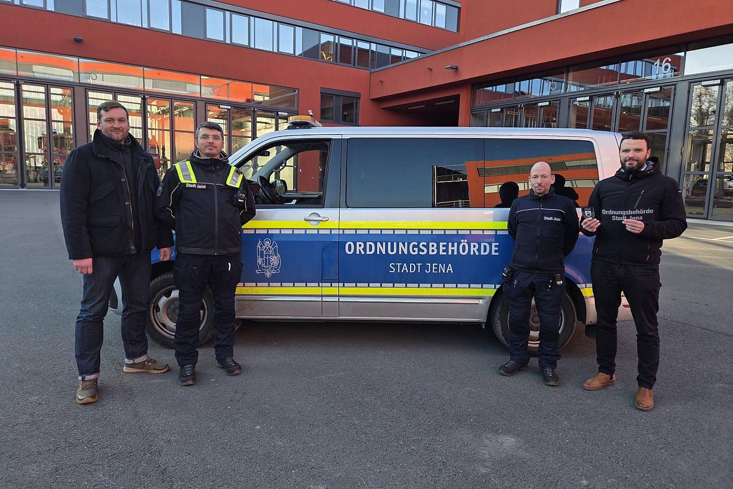 | Bildhinweis: | Neues Erscheinungsbild für mehr Sichtbarkeit: Sebastian Wick (links), Fachdienstleiter Kommunale Ordnung, und Bürgermeister Benjamin Koppe (rechts) am 20.01.2026, Stadt Jena via |