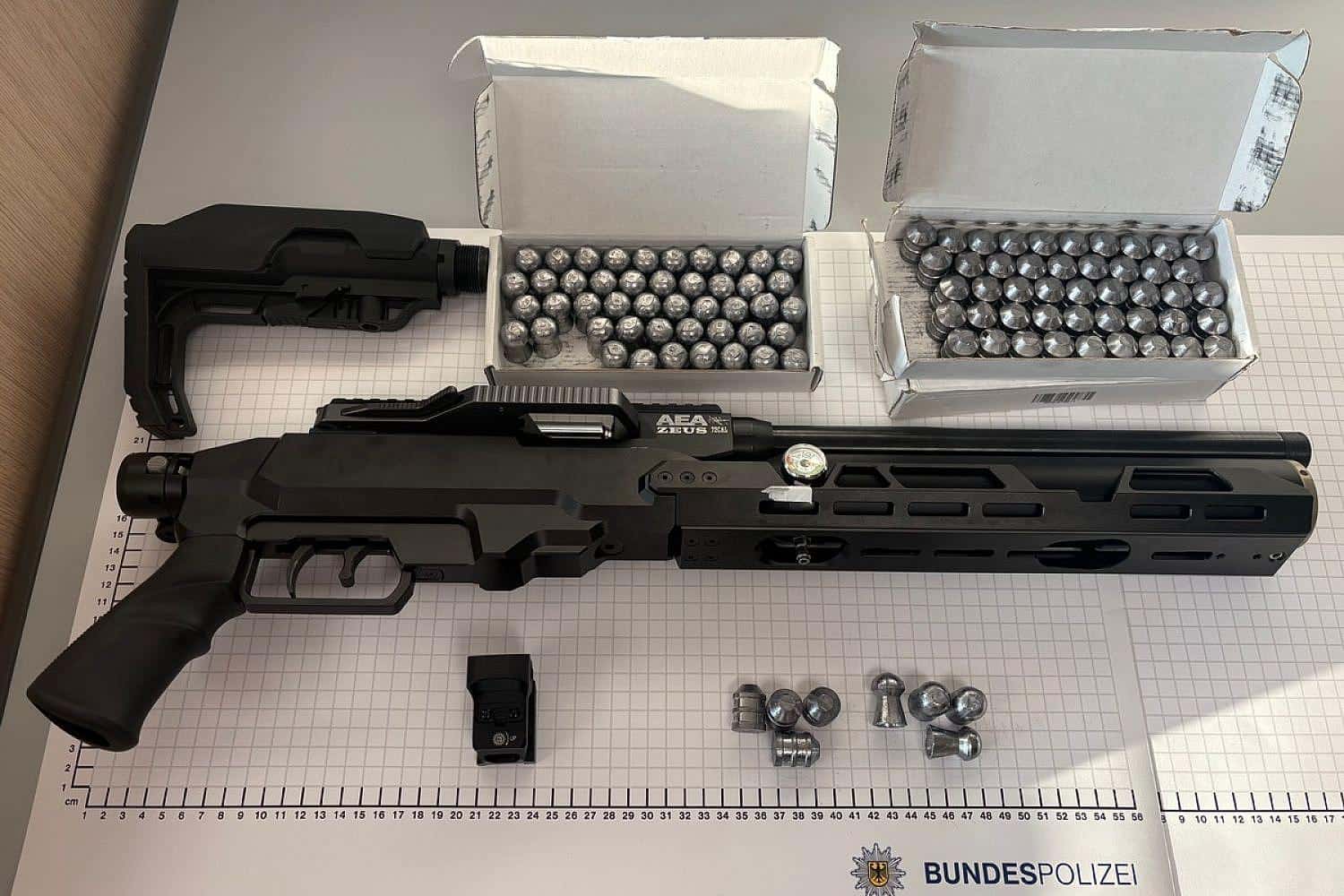 - Bundespolizei sichert leistungsstarkes Luftgewehr an der deutsch-niederländischen Grenze.