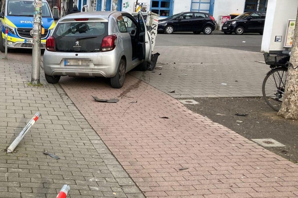 Als ein vorausfahrendes Fahrzeug bremste, wich er nach rechts aus und kollidierte mit zwei Begrenzungspollern sowie einem Telefonverteilerkasten. Sein Wagen kam schließlich auf einem Radweg zum Stehen.