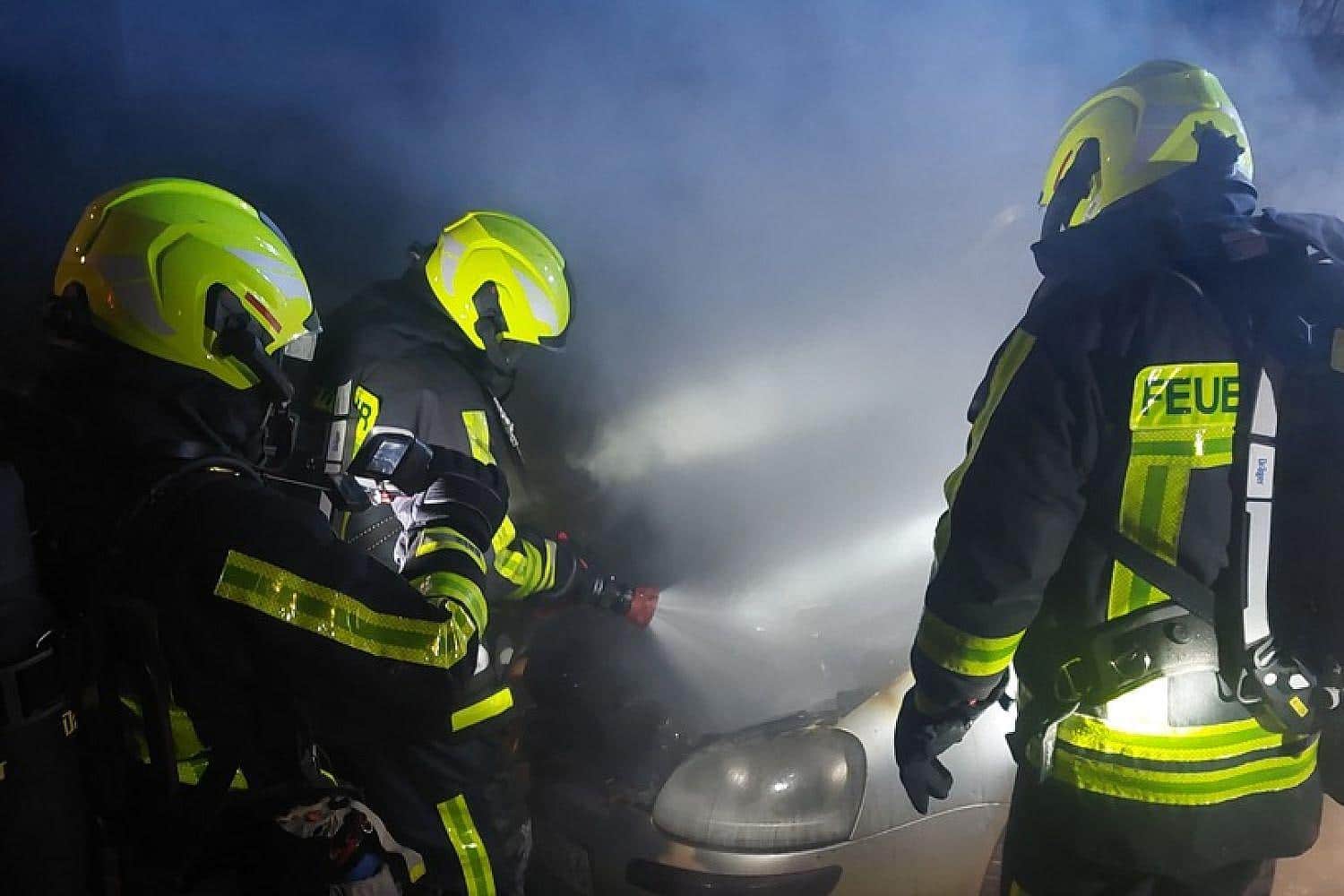- Feuerwehr wurde um 02:20 Uhr alarmiert, beide Fahrzeuge standen im Motorraum in Flammen.
