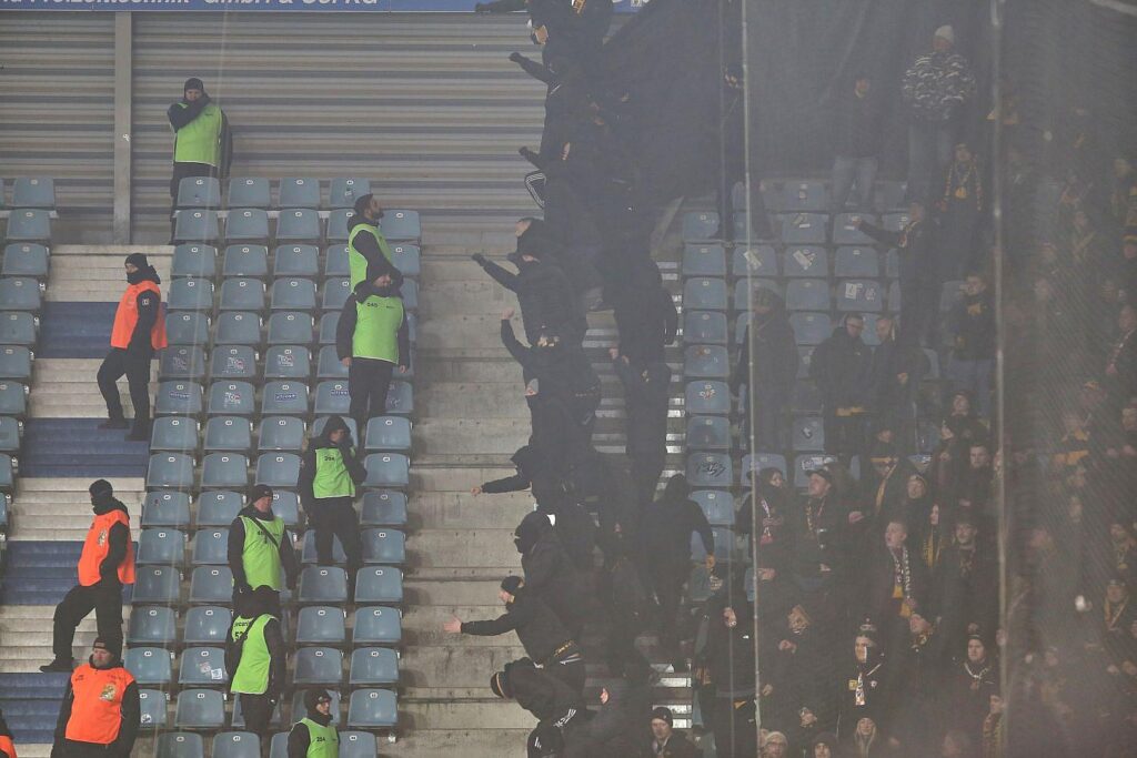 Die Ausschreitungen hatten sich am vergangenen Samstag in der Halbzeitpause des Spiels ereignet, als gewaltbereite Heimfans versuchten, in den Gästeblock vorzudringen und dabei 64 Polizisten verletzten, 17 davon schwer.