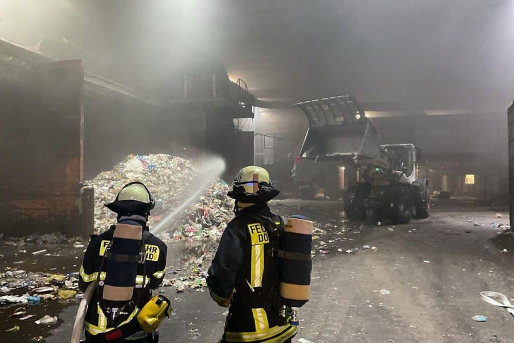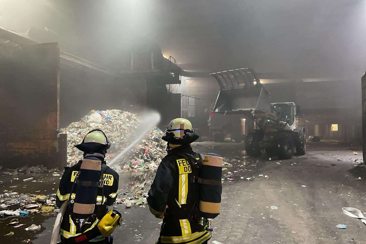 - Feuer in Lagerhalle eines Recyclingunternehmens in Dortmund entdeckt um 03:53 Uhr.