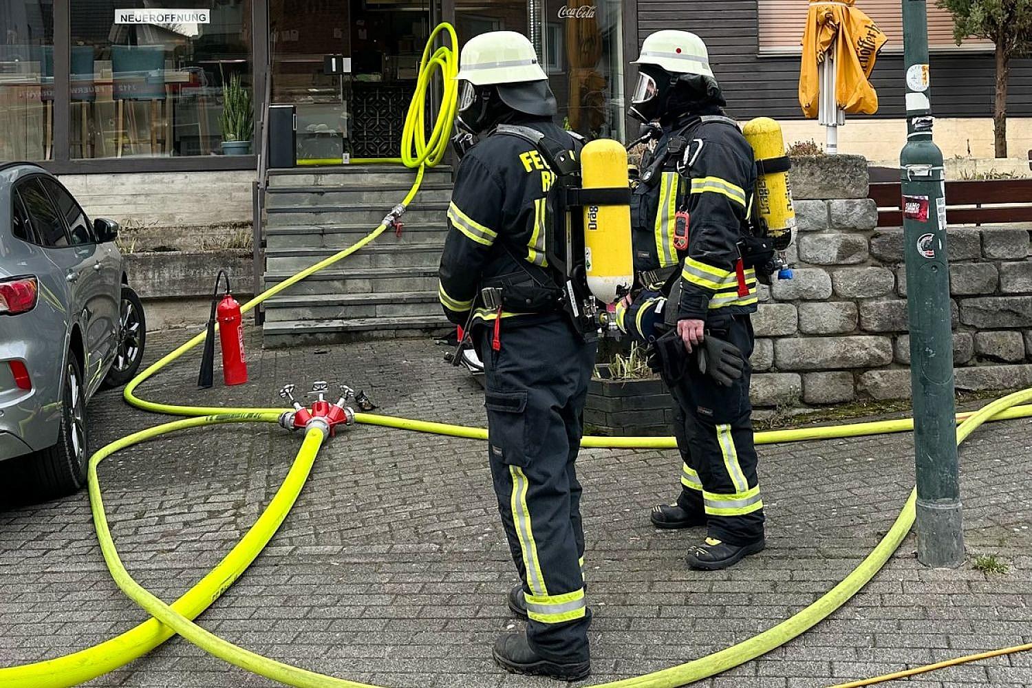 | Bildhinweis: | Einsatzkräfte vor dem Ladenlokal (Archiv), Feuerwehr Rösrath via |