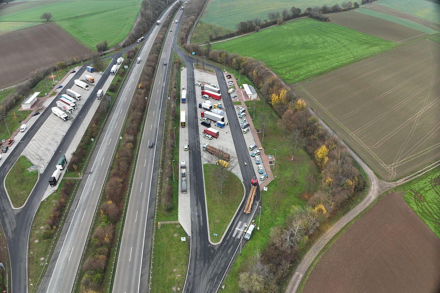 - Kontrolle des gewerblichen Güter- und Personenverkehrs am Parkplatz Pfingstweide, Autobahn 45 bei Hanau.