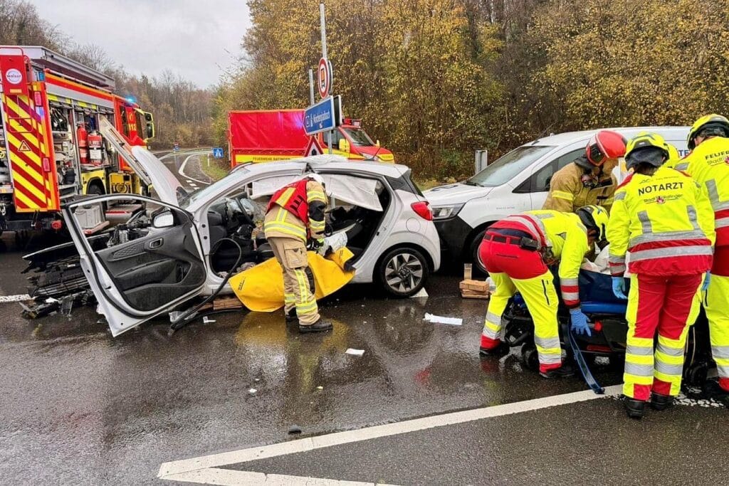 Eine der verletzten Personen war in ihrem Fahrzeug eingeschlossen und zeigte Anzeichen für ein mögliches Wirbelsäulentrauma. Die Feuerwehr sicherte die Unfallstelle, stellte den Brandschutz her und befreite die eingeschlossene Person mit hydraulischen Rettungsgeräten.