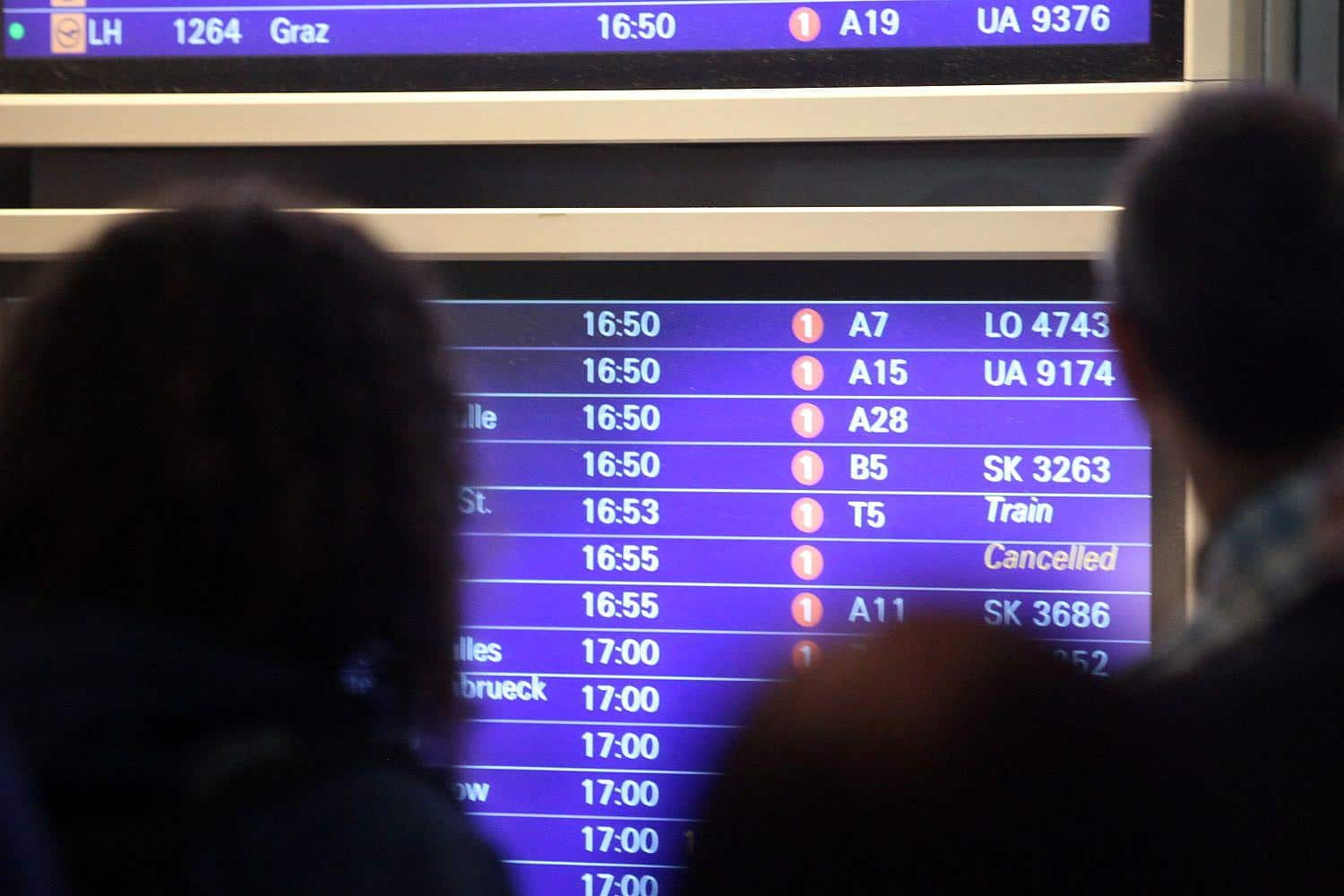 | Bildhinweis: | Passagiere vor Informationstafel am Frankfurter Flughafen |