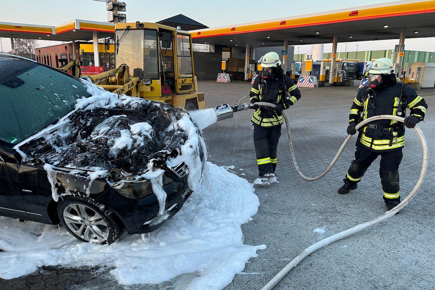 Pkw-Brand auf Autohof bei Sittensen verletzt Fahrer