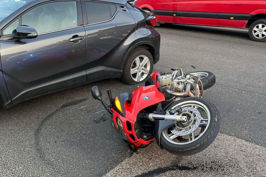 • Motorradfahrer überholte und kollidierte mit dem abbiegenden Auto