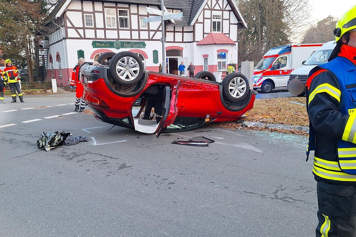 Durch die Kollision wurde der Renault auf das Dach geschleudert.